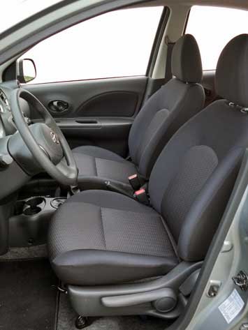 | O volante enviesado não contribui para a posição do motorista no March, mas seu banco traseiro é mais espaçoso em todas as dimensões |