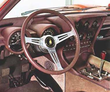No entanto, a palavra conforto era totalmente antagônica ao Lambo: devido ao pequeno habitáculo, que compartilhava espaço com o motor, e à pouquíssima altura da carroceria, entrar no Miura não era tarefa simples. Se não bastasse o esforço para se sentar ao volante, os pequenos bancos não possuíam regulagem de distância: regulavam-se o volante e os pedais, esta até hoje uma solução pouco usual. |