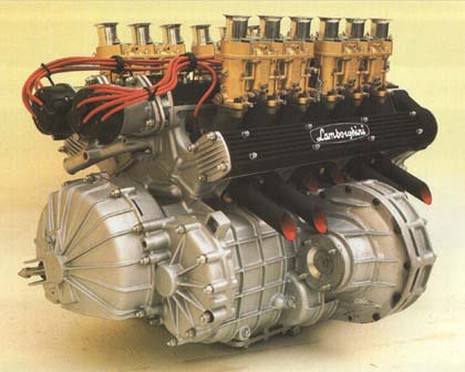 O sofisticado V12: 4,0 litros, duplo comando por bancada, quatro carburadores, 350 cv de potência líquida |