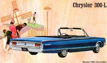 O último Chrysler da "série letra" foi o 300L de 1965, que exibia novas linhas e cada vez menores distinções para o Sport 300. Mais amplo, o carro transportava agora cinco passageiros, com teto rígido ou conversível e sempre duas portas. Os faróis passavam a retangulares e as rodas traseiras ficavam ligeiramente encobertas pelos pára-lamas. Com o fim da dupla carburação, o motor de 360 cv agora era o único, enquanto o Sport oferecia os de 315 e 360 cv. Para o ano seguinte a Chrysler decidiu encerrar a série, que já não seguia o conceito esportivo de 1955. Nesse período a Chrysler produziu 14.268 unidades com teto rígido e 2.588 conversíveis. |