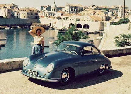 aparece no "banco traseiro" de um roadster 356, acompanhado