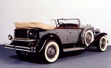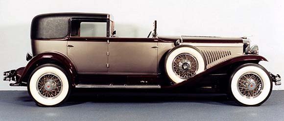 Duesenberg 20 Grand 1933 (acima), um carro atipicamente fechado e com uma