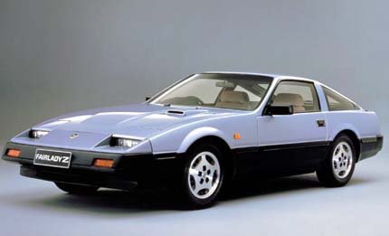 | O cinquentenário da Nissan era celebrado, em 1984, com a terceira geração: o 300ZX, de linhas retas e motor com seis cilindros em "V" |