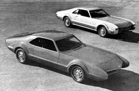 | O vidro traseiro bem envolvente da versão XS, em 1977, foi associado a um teto targa neste Toronado XSR, que algumas fontes dizem não ter chegado ao mercado |