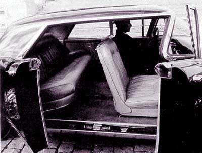 Tinha três volumes bem distintos e suas dimensões externas não eram nem um pouco européias. Levava com muito conforto cinco passageiros e mantinha o mesmo luxo do cupê. Utilizava também a mesma frente deste. Atrás, o destaque ficava por conta de lanternas redondas e um discreto "rabo de peixe", bem em uso nos modelos grandes dos anos 50. O porta-malas era mais que suficiente. Nas extremidades do pára-choque, a saída dos canos de escapamento. |