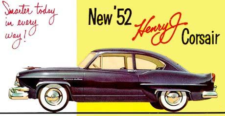 | Para amenizar a simplicidade do Henry J, uma versão mais luxuosa foi criada: o Corsair, lançado em 1952, mesmo ano em que surgia o estepe "Continental" do modelo Vagabond |