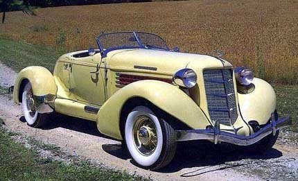 O modelo 1935, um dos últimos da série, com nova aparência frontal: no ano seguinte a Auburn deixaria o mercado, abrindo espaço para numerosas réplicas |