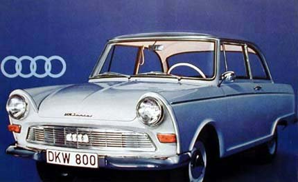 Vida breve teve a versão conversível do F12, chamada de forma pouco apropriada de Roadster (tipo de carro que tem apenas dois lugares, enquanto este era um 2+2). Ao mesmo tempo o motor maior ganhava 5 cv, sendo a única opção para o modelo aberto da linha. Em 1965 era encerrada a produção desses modelos, depois de 237,6 mil unidades do Junior, 110 mil dos sedãs F11 e F12 e apenas 2,8 mil conversíveis. A DKW passava às mãos da Volkswagen, que preferiu manter apenas o maior modelo da marca, o F102. Com a substituição do motor por um de quatro tempos, daria origem ao primeiro Audi. A Auto Union estava tornando-se história, mas o emblema das argolas encontrava novas grades onde ser aplicado. |