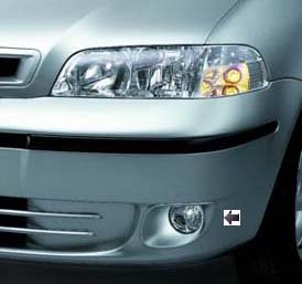 lâmpada (indicada pelas setas na foto abaixo) visa a sinalizar o veículo ao trafegar sob nevoeiro ou chuva