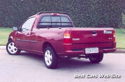 | Com os mesmos faróis triangulares e exclusiva grade de apenas dois vãos, pintada na cor da carroceria, a nova frente do Courier chega a agradar mais que a do próprio Fiesta | ![]() |