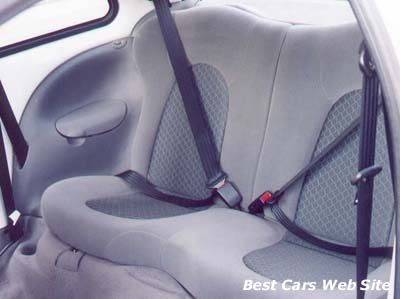 Só quatro lugares, com espaço apenas razoável para quem viaja atrás. Mas há os importantes cintos de três pontos e um amplo porta-objetos na lateral direita |