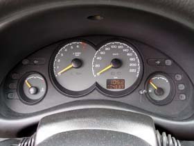 alavanca à sua esquerda, termômetro do motor, mostrador de combustível
