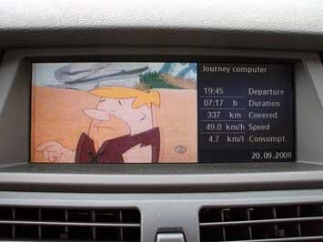 de bordo, ajustes de climatização, rádio e televisor/DVD, cujas imagens